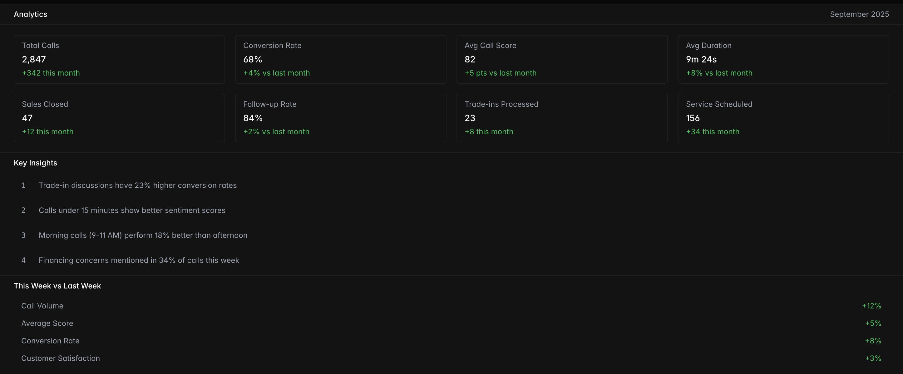 AI-powered analytics help sales teams identify winning patterns, optimize conversations, and accelerate deal closure.