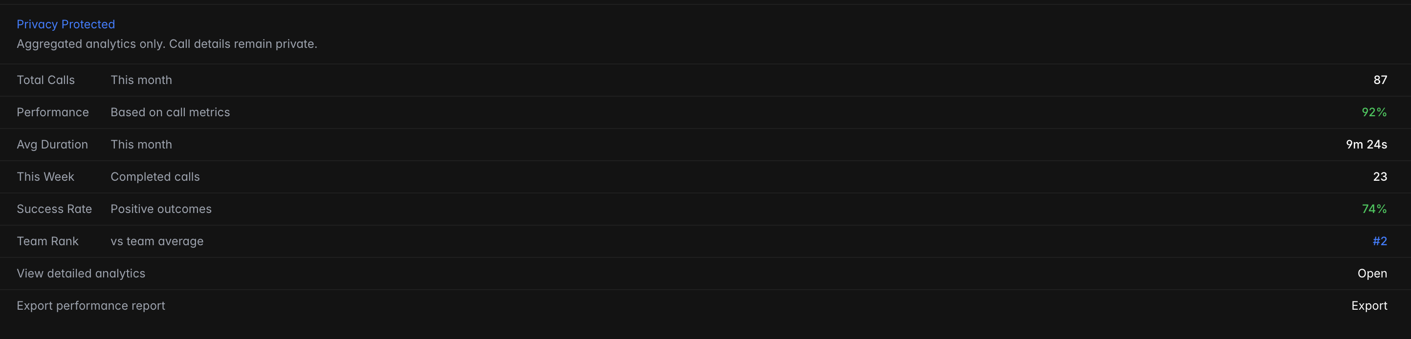 Comprehensive team analytics, coaching insights, and performance tracking to help sales managers drive results across their entire team.